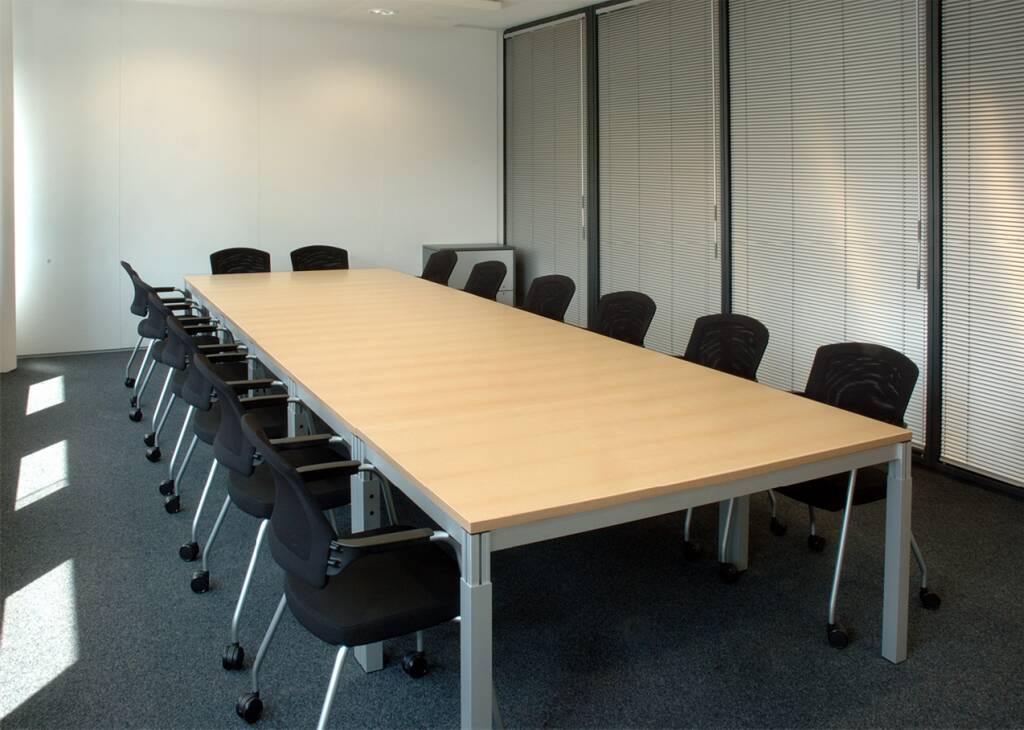 Passend dazu sind grösszügige 4-Fuss-Arbeitstische in Aluminium im Einsatz. Die Ahorn furnierten Tischplatten vermitteln eine angenehme Atmosphäre. Jeder Mitarbeiter verfügt über einen persönlichen, mobilen Aktencontainer. Der Trolley wird gleichzeitig als Steharbeitsplatz und Kommunikationszone genutzt.